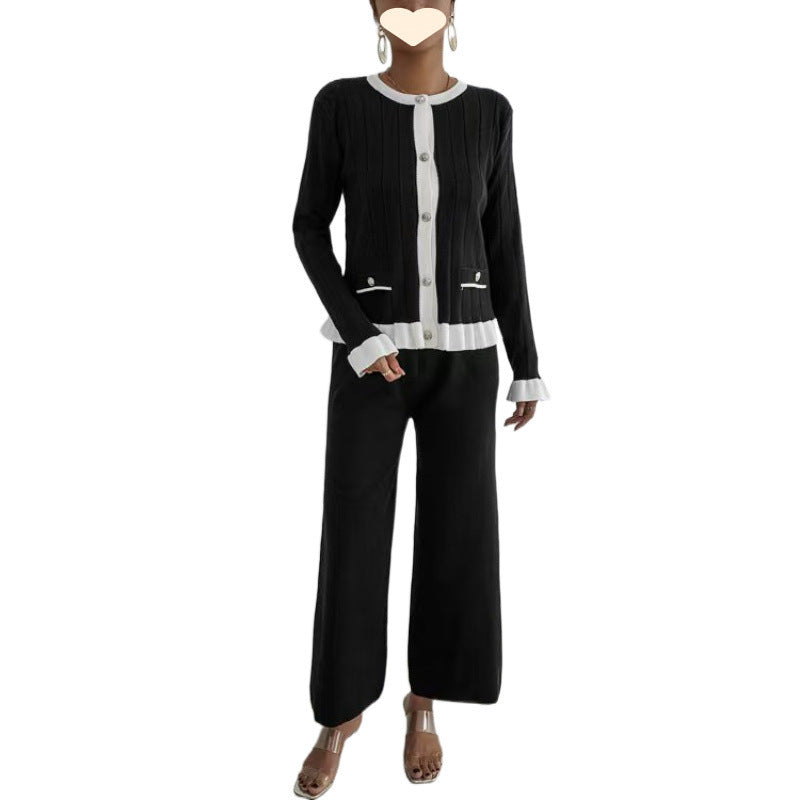 L'Ensemble Chic Élégance est conçu pour offrir une combinaison parfaite entre style et confort. Ce set comprend un cardigan tricoté à manches longues évasées et un pantalon ample, tous deux fabriqués dans des matériaux de qualité supérieure.