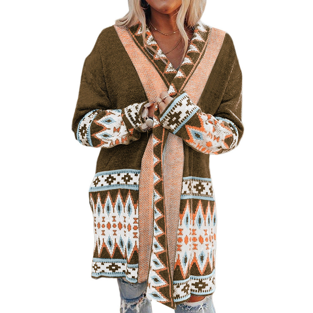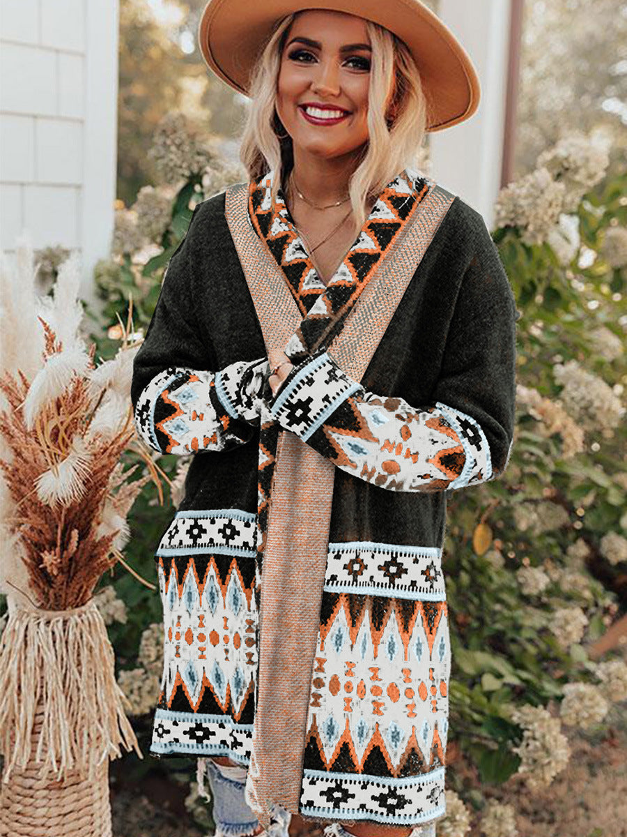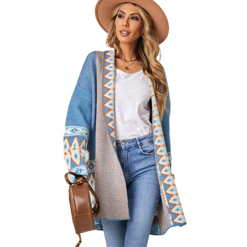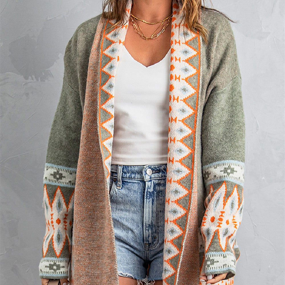 Le Cardigan Bohème Élégance est un vêtement unique qui allie les motifs géométriques modernes à une couleur apaisante. Parfait pour ajouter une touche de sophistication à vos tenues décontractées.