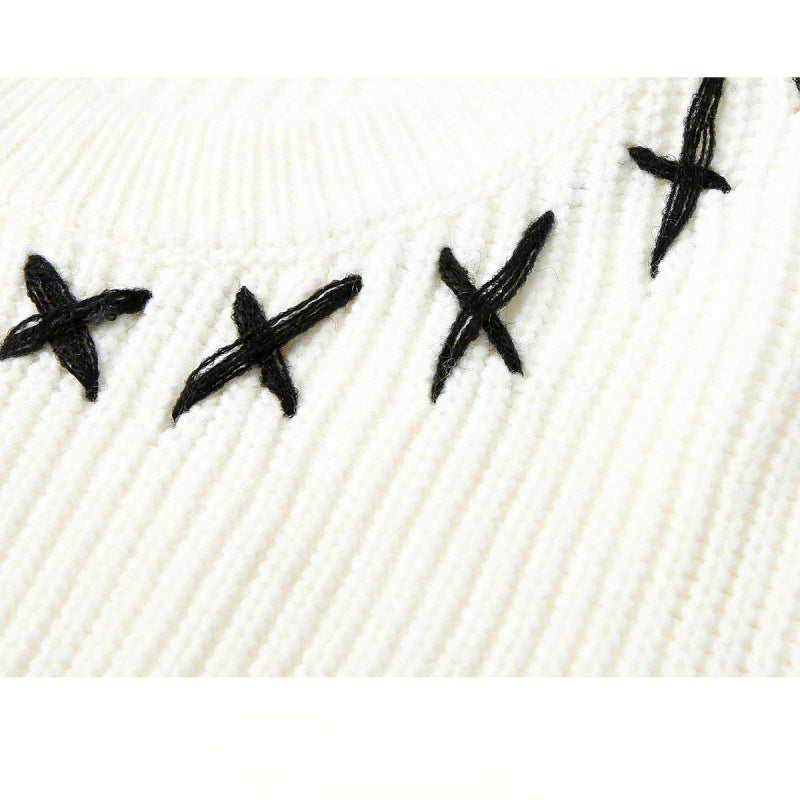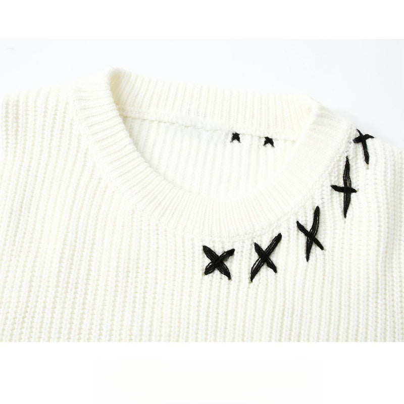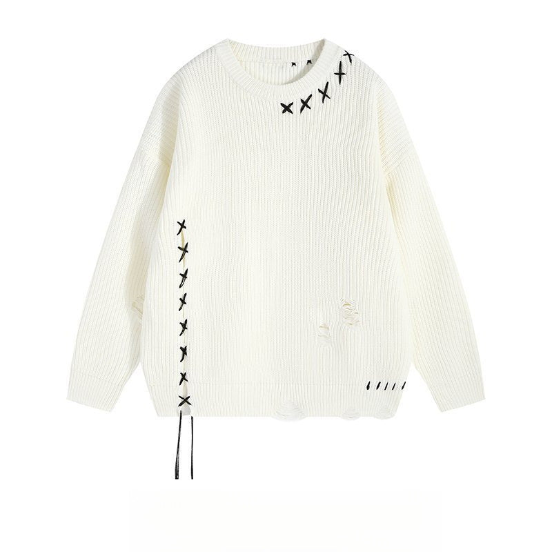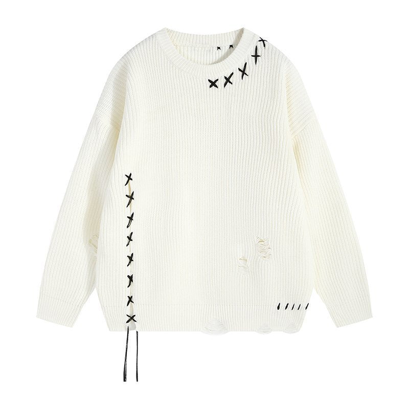 Découvrez notre pull "Rebelle Blanc", une pièce statement en maille épaisse au design contemporain unique. Ce tricot ample arbore des détails couture distinctifs avec ses lacets croisés contrastants et ses finitions effilochées qui apportent une touche d'originalité à ce basique réinventé.